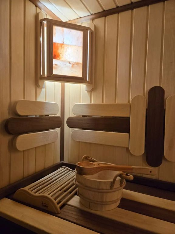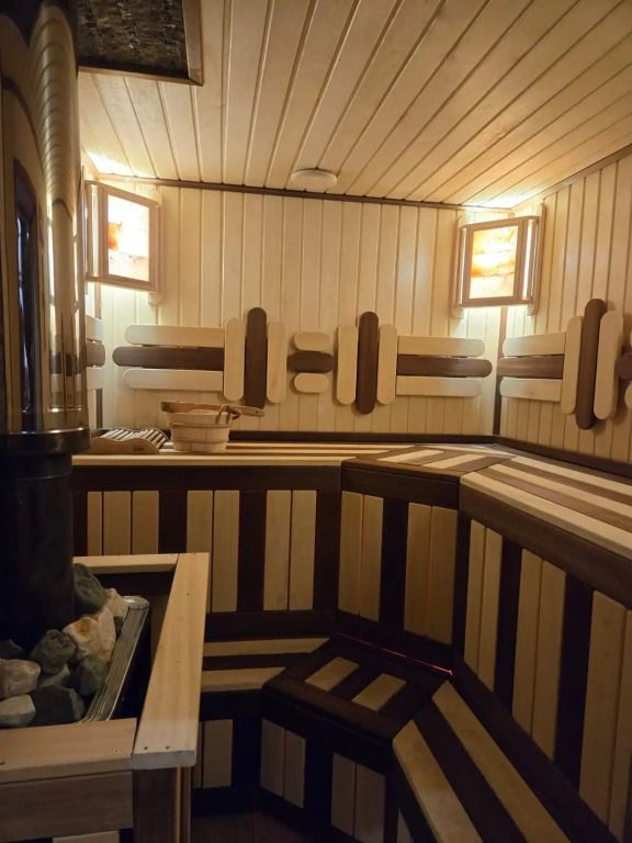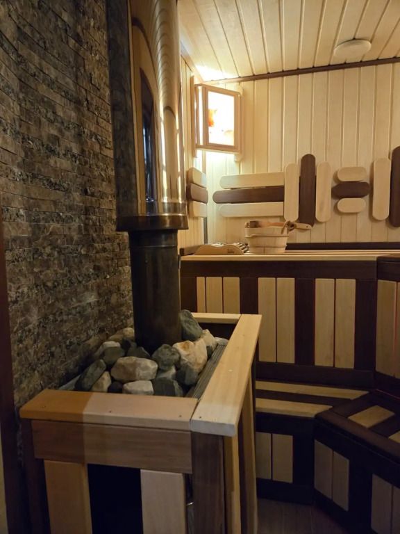 В доме имеется сауна с композицией из (кедра, абаш и липы), топится на дровах, полы с подогревом, а также имеется тропический душ с двумя обливными вёдрами, подогрев полов на всём первом этаже.