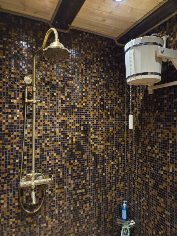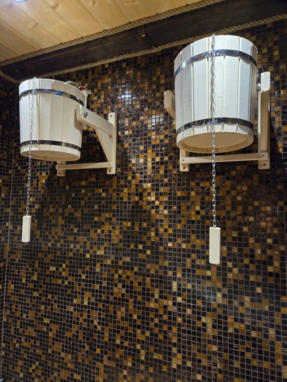 Инфраструктура: обливное ведро, душВ доме имеется сауна с композицией из (кедра, абаш и липы), топится на дровах, полы с подогревом, а также имеется тропический душ с двумя обливными вёдрами, подогрев полов на всём первом этаже.