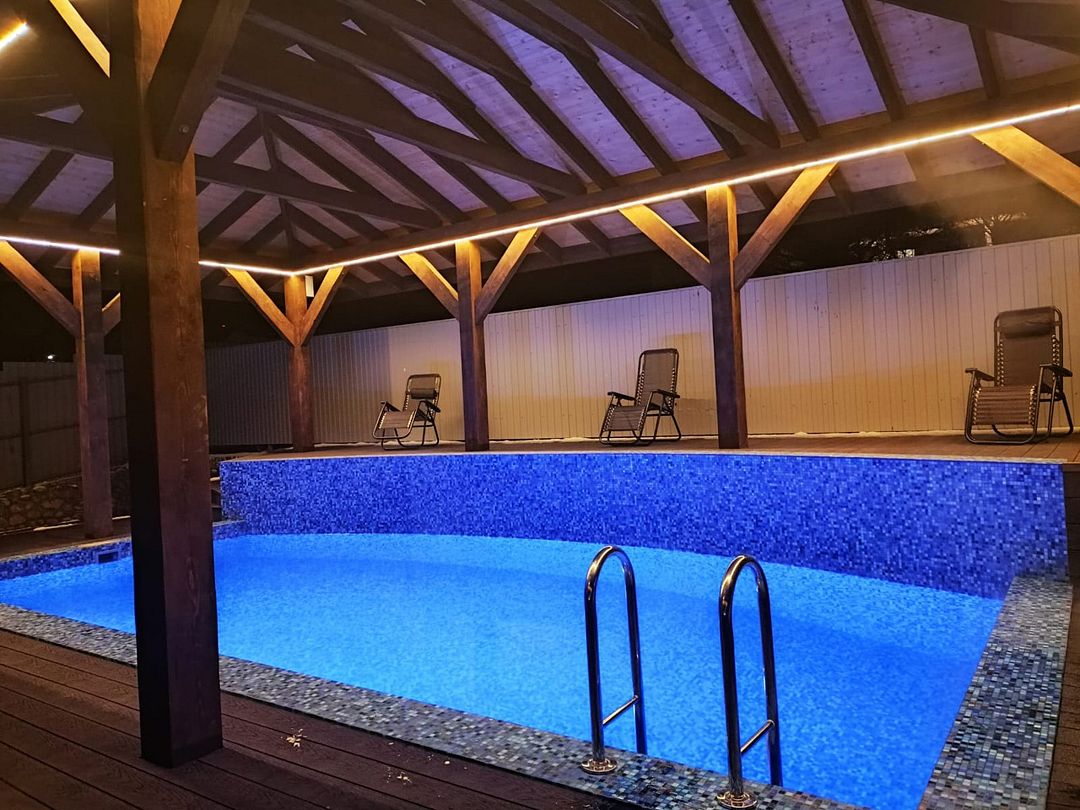 На участке находится круглогодичный тёплый бассейн, что особенно привлекает, так как температура воды в бассейне +34 градуса!