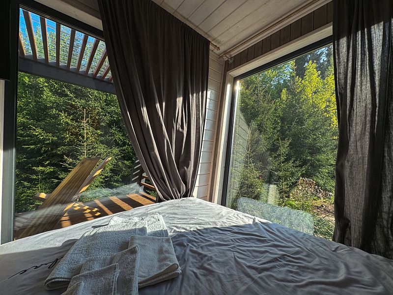Семейный отдыхДостоинстваПровели чудесные дни в уютном домике посреди красивого леса. Панорамные окна с видом на деревья создавали атмосферу умиротворения и покоя. В домике был замечательный травяной чай, кофе-капсула и все удобства. Есть прокат велосипедов. С воротами и дверью разобрался не сразу, но всё оказалось интуитивно понятно. Соседи были дружелюбны, приедем еще.