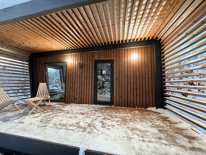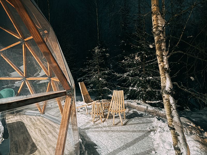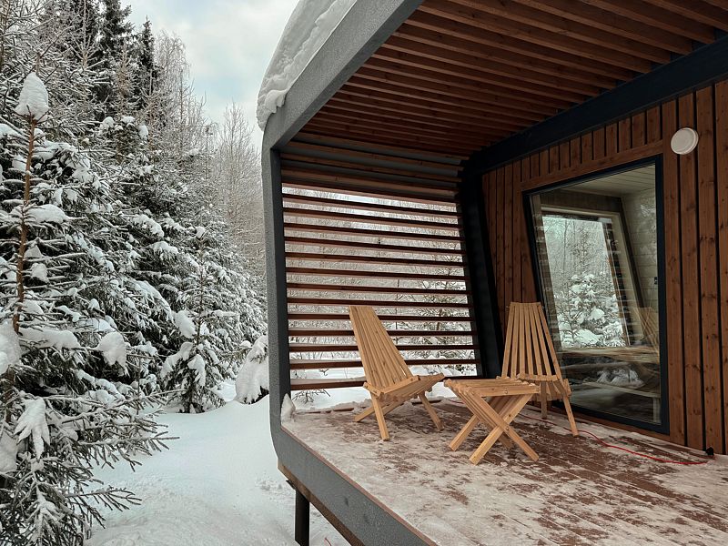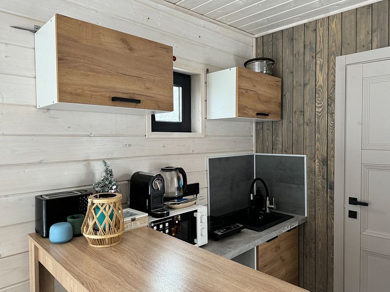 Имеется все необходимое для комфортного проживания. Уютные домики оснащены теплыми полами, обустроена обеденная зона и ванная комната. Вечер можно провести за просмотром фильма или выбрать понравившуюся настольную игру или книгу. На территории работает бесплатный Wi-Fi.