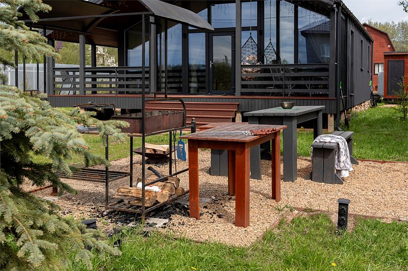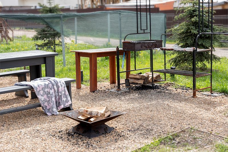 На территории дома оборудована костровая зона и зона с мангалом, где можно приготовить вкусные блюда и отдохнуть на свежем воздухе.