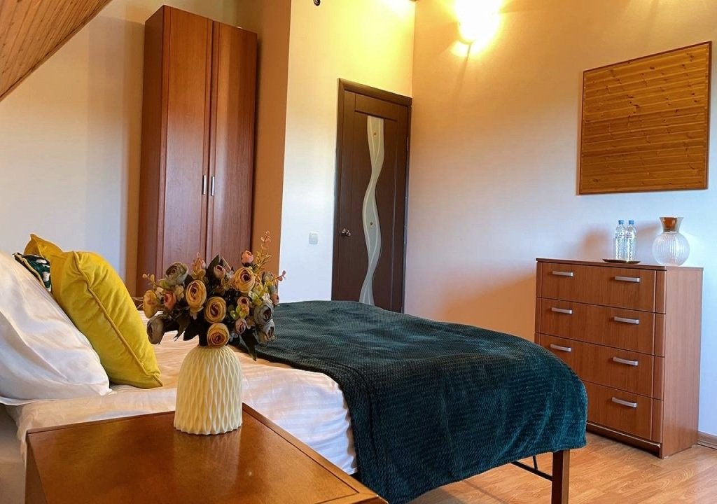Гостевой дом площадью 142 кв.м. имеет два этажа и рассчитан на 10 спальных мест.