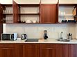Бытовая техника: холодильник, микроволновая печь, электрический чайник, стиральная машина, варочная панель.
