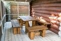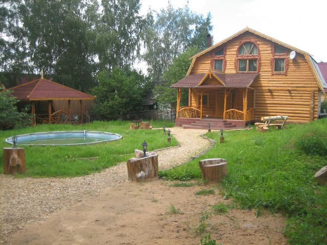 Двухэтажный бревенчатый дом выполнен русском стиле с соблюдением всех лучших традиций. В доме расположено 2 спальни, просторная и уютная гостиная, в которой можно провести прекрасный вечер за большим столом в кругу близких и друзей, а так же можно потанцевать или спеть в караоке. Также в доме есть небольшая кухня. Рядом с домом есть мангал. Летняя веранда с освещением и бассейн.
