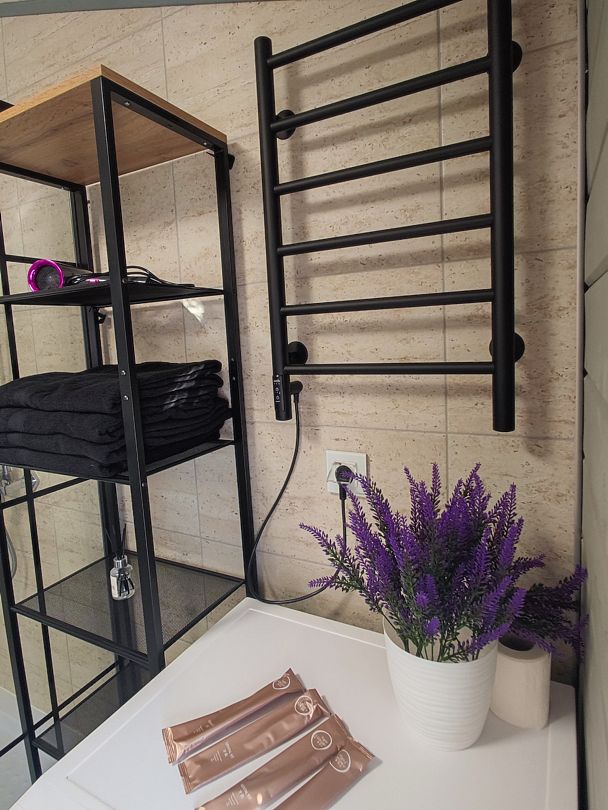 Техника: кондиционер, холодильник, плита, духовой шкаф, кофемашина, микроволновка, стиральная машина, посудомоечная машина, водонагреватель, телевизор, фен.