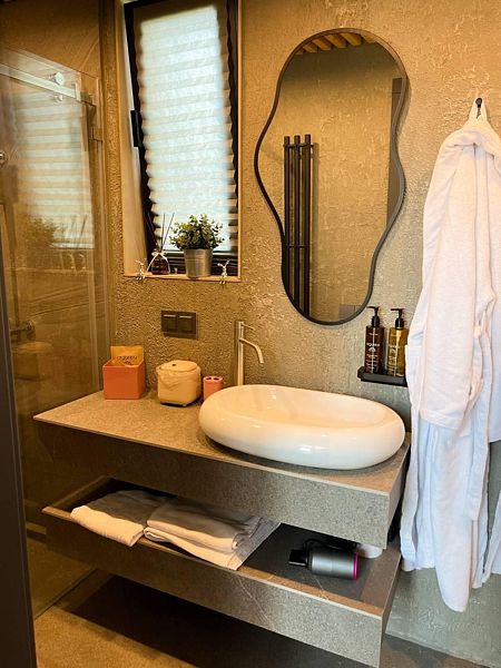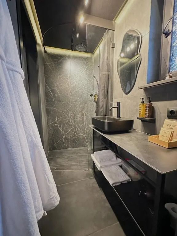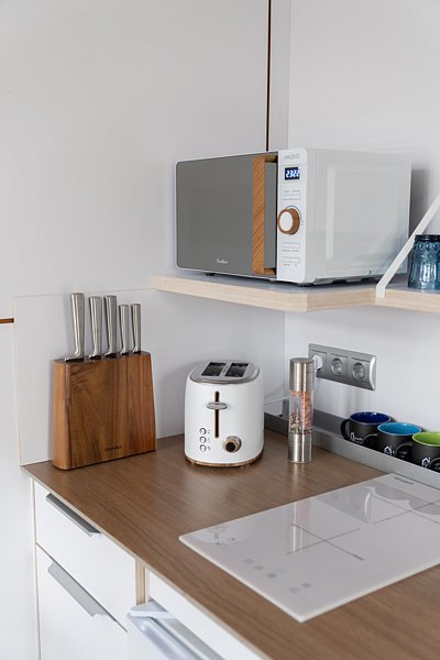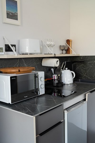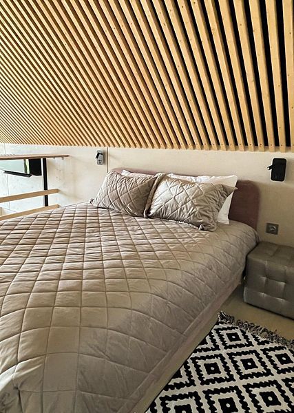 Дом Бархат рассчитан на размещение пары гостей, также есть возможность разместить ещё двух гостей на диване. Манеж-кровать для ребенка до 3 лет по запросу.