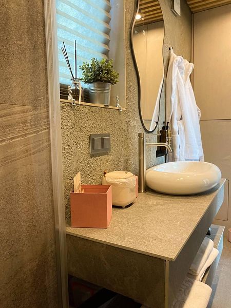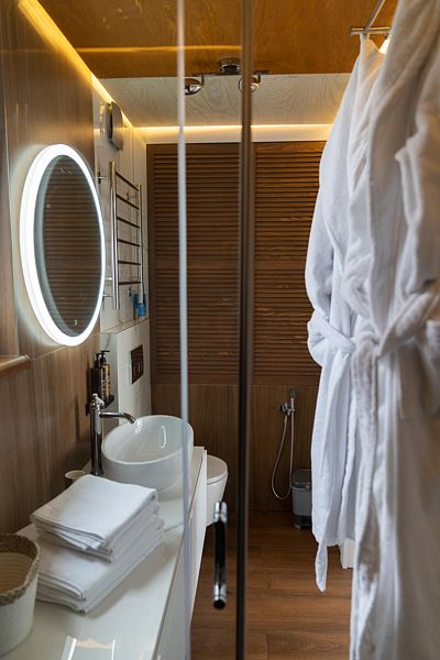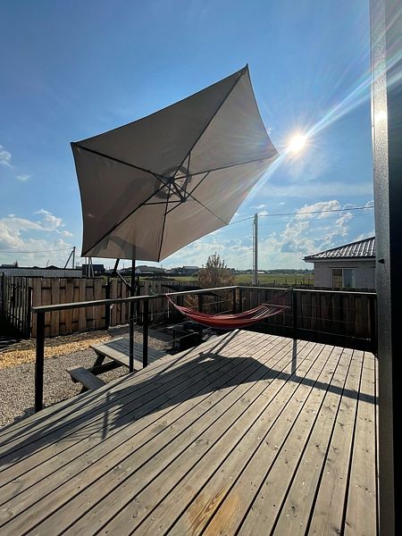 Дом Баблгам рассчитан на размещение пары гостей, есть возможность дополнительно разместить двух гостей на диване. Манеж-кровать для ребенка до 3 лет по запросу.