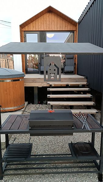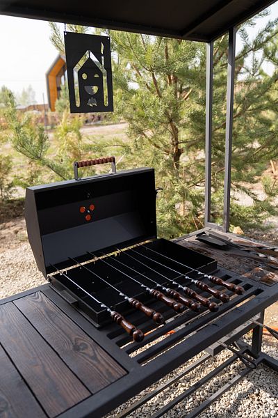 - Рядом BBQ-зона с большим мангалом.