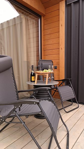 - Из гостиной выход на открытую террасу с креслами-шезлонгами и столиком.