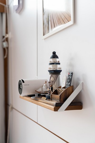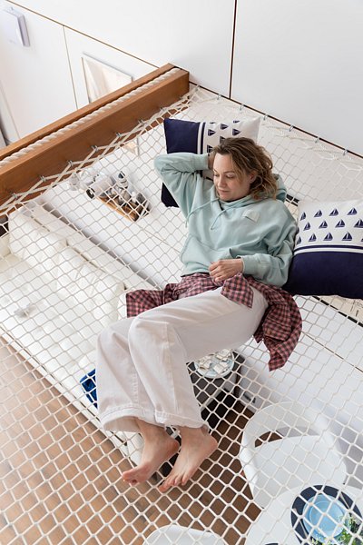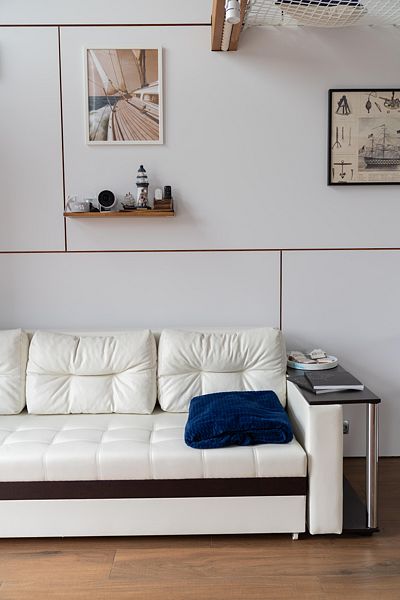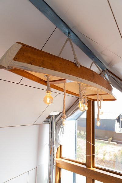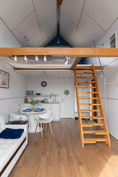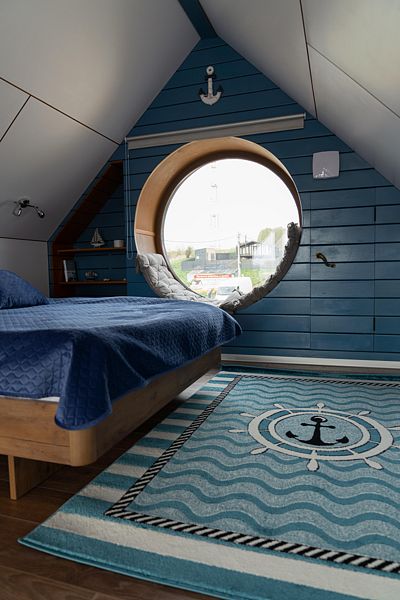 Дом в стиле яхты Бригантина рассчитан на размещение 2-4 гостей, два спальных места на кровати 160*200 и два на раскладном диване.