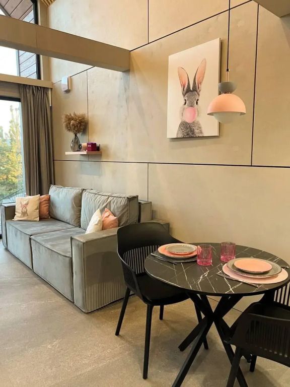 Умная Алиса управляет многими устройствами, включит свет и откроет шторы. Проектор, большой экран и мягкий диван для приятного кино-вечера.
