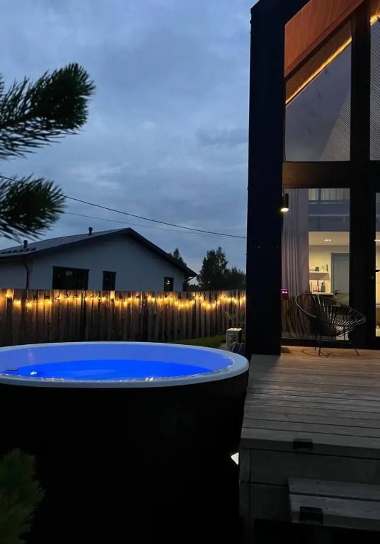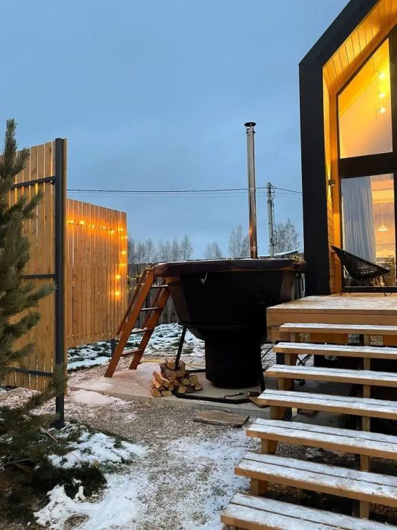 Управлением дома занимается Алиса. Для гостей доступен скоростной Wi-Fi, проектор со Smart TV и тюбинги для катания с горки.