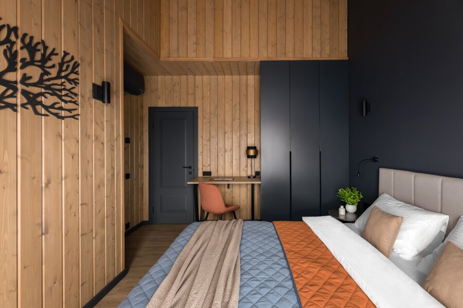 - Мастер-спальня с двуспальной кроватью 160х200.