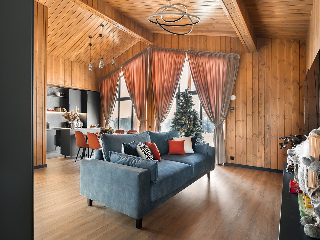 Этот современный дом с панорамными окнами и сауной расположен всего в 4 минутах от курорта Сорочаны, а также довольно близок к другим развлекательным комплексам Дмитровского района.
