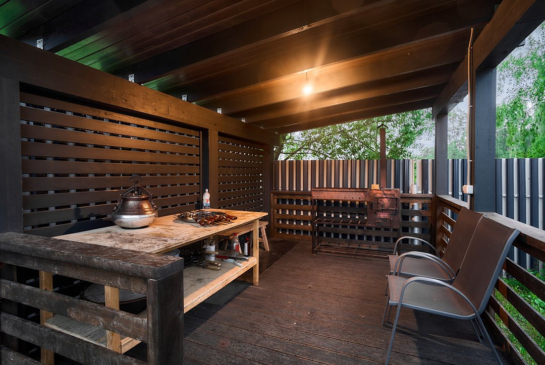 Неотъемлемой частью загородного отдыха станет еда, приготовленная на мангале. Для этого есть полностью оборудованная мангальная зона и обеденный стол со скамьями.