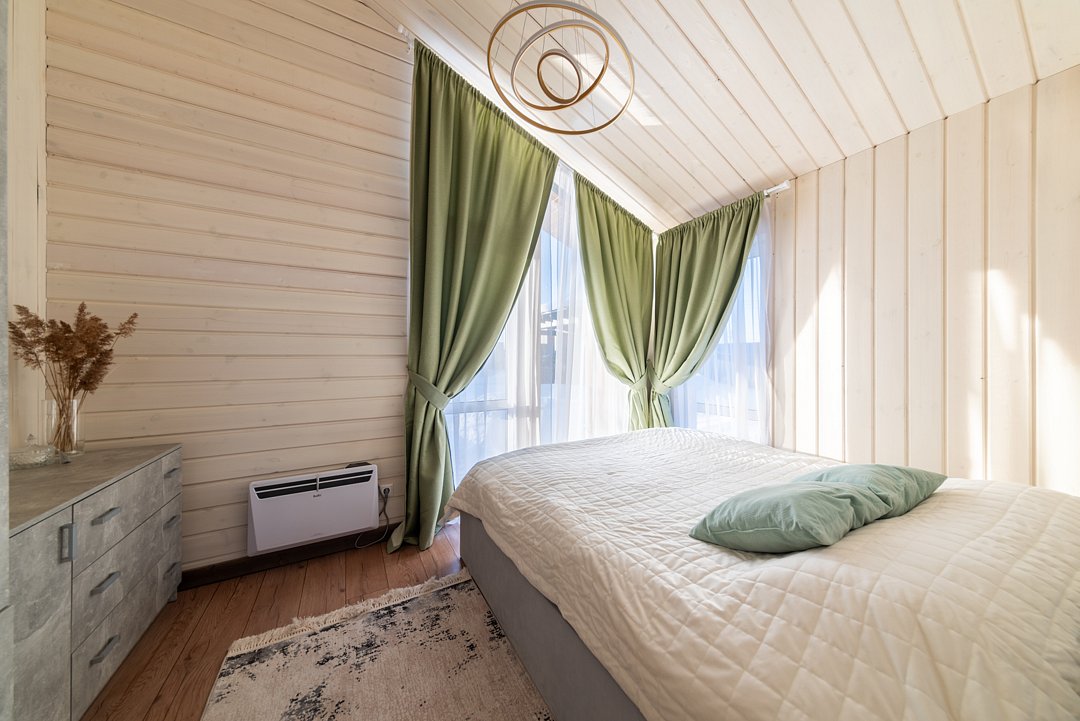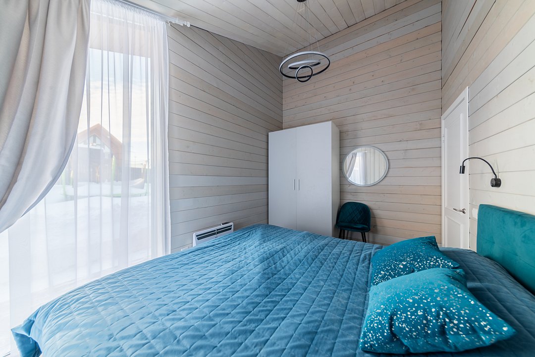 В дoме двe отдельные спальни с кроватями 160х200 и 180х200.