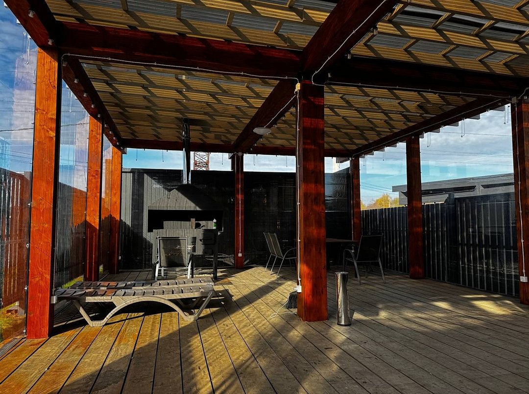 Погрузитесь в атмосферу домашнего уюта, разжигая камин по вечерам и наслаждаясь любимыми фильмами в компании друзей. Атмосферная терраса с уютными креслами, столиком и шезлонгами позволит провести вечера в комфортной обстановке.