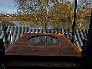 Приятным бонусом станет электрическая сауна с панорамным видом на озеро. Одна топка входит в стоимость проживания (час на разогрев и три часа парения).