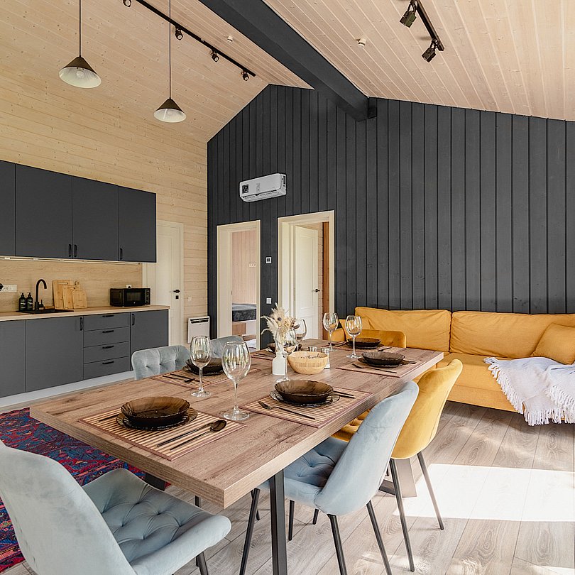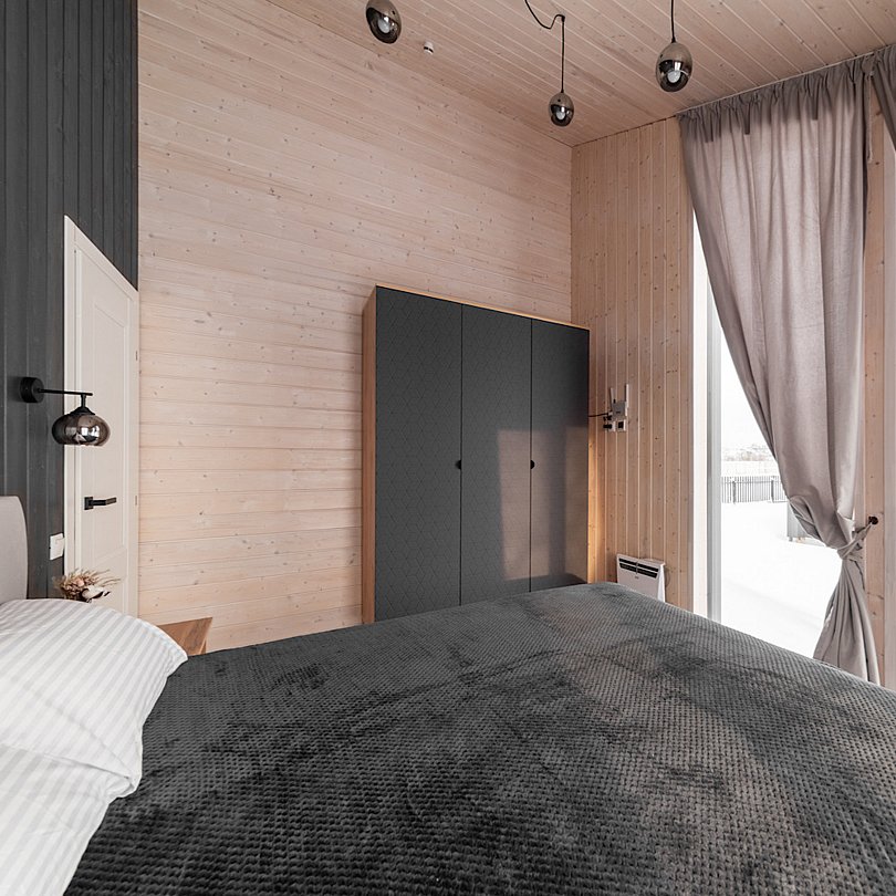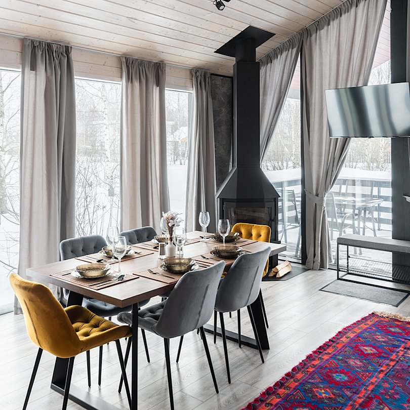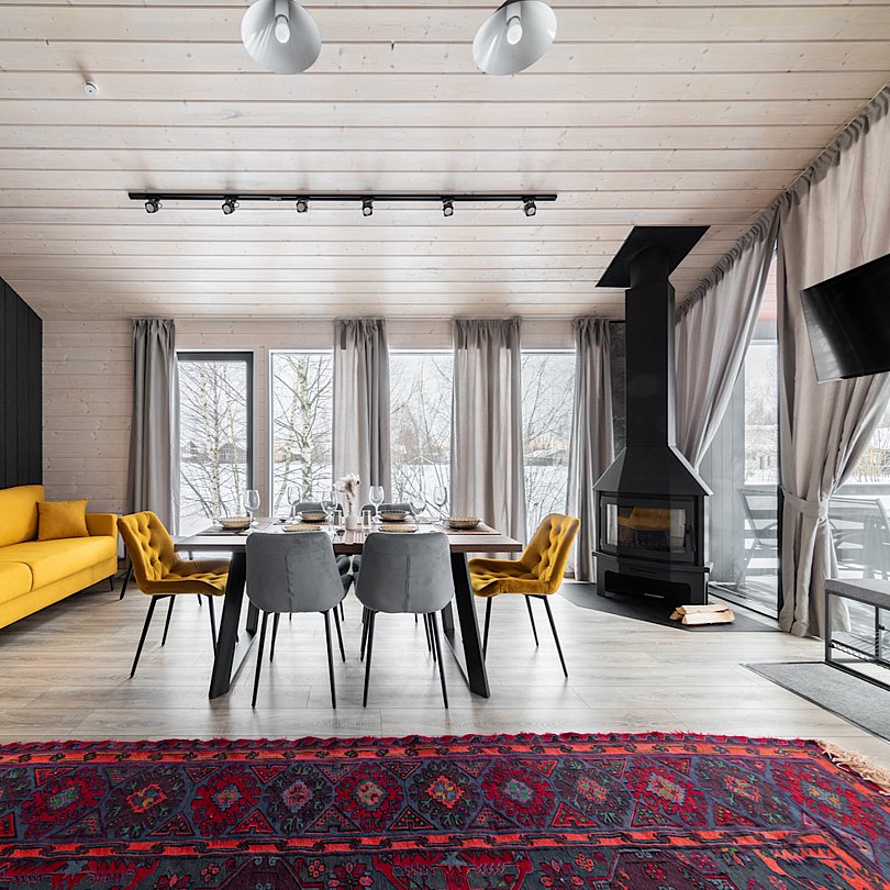 «Домик у Сорочан» — это стильный барнхаус с панорамными окнами, который станет ярким акцентом ваших фотографий и воспоминаний. Внутри вас ожидают две уютные спальни и функциональный кабинет с раскладным диваном. Просторная кухня-гостиная с камином и удобной зоной отдыха полностью укомплектована всем необходимым. Вы сможете проводить уютные вечера у камина, укутавшись в теплые пледы, и смотреть любимые фильмы в компании близких, ведь дрова предоставляются без дополнительных хлопот.