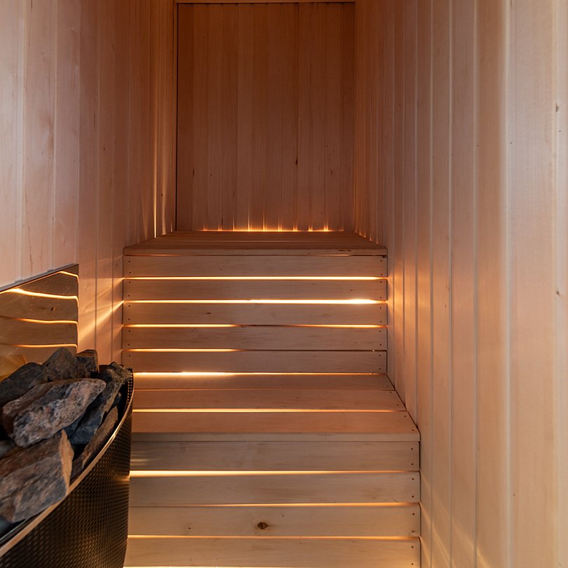 В барнхаусе оборудована электрическая сауна, рассчитанная на 2–3 человек. Это идеальное место для отдыха и восстановления сил. Гости могут насладиться полноценным паром, так как в стоимость проживания включены один час разогрева и три часа парения.