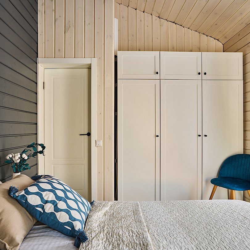 В доме две отдельные спальни и спальня-кабинет с раскладным диваном и рабочим столом.