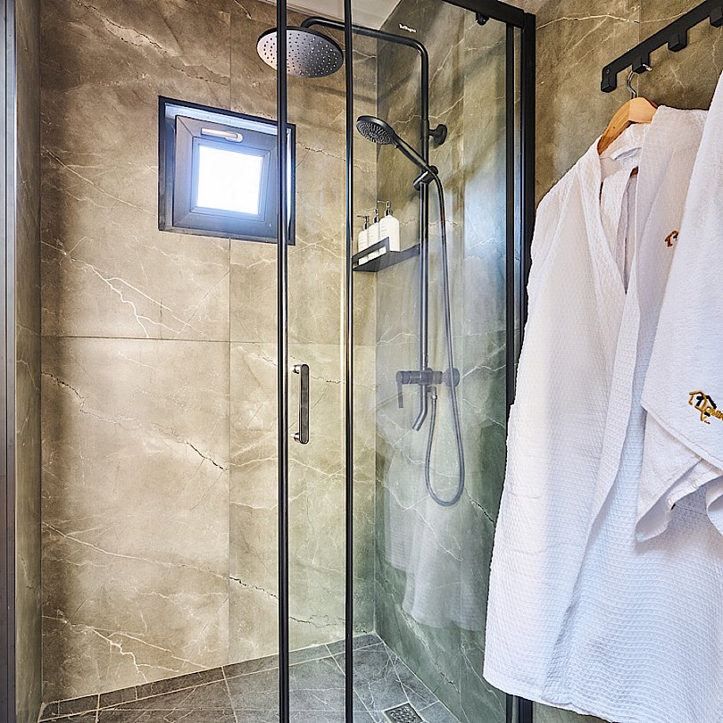 Санузел оборудован душевой кабиной, Гигиенические принадлежности, полотенца и халаты предоставляются.