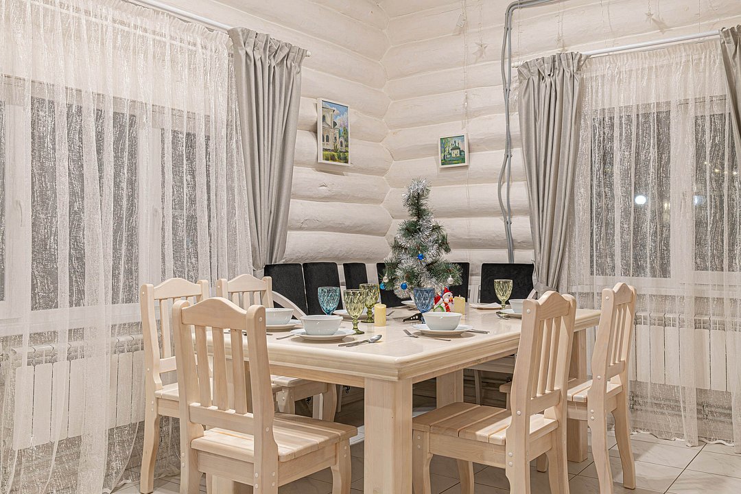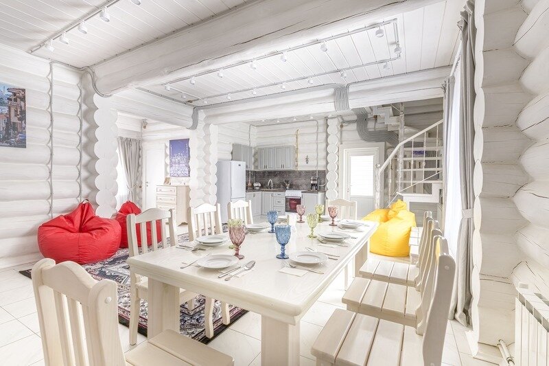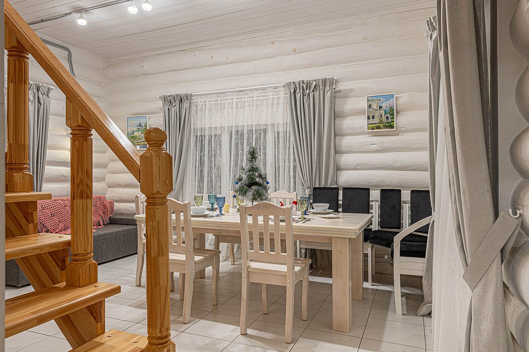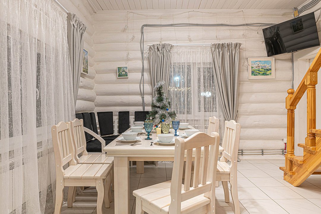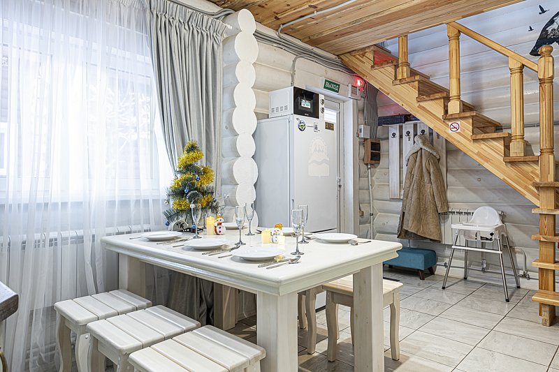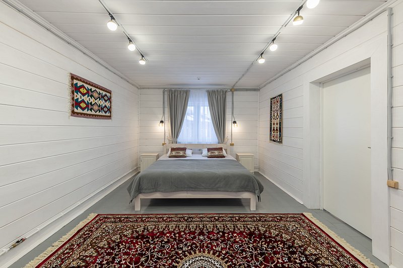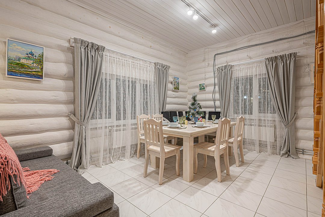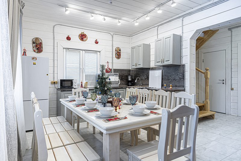 Большой и уютный дом «Санкт-Петербург» площадью сто восемьдесят квадратных метров в гостевом комплексе «Кикино на Веле». Дом двухэтажный, с открытой верандой. Дом рассчитан на четырнадцать гостей (включая детей старше трех лет).