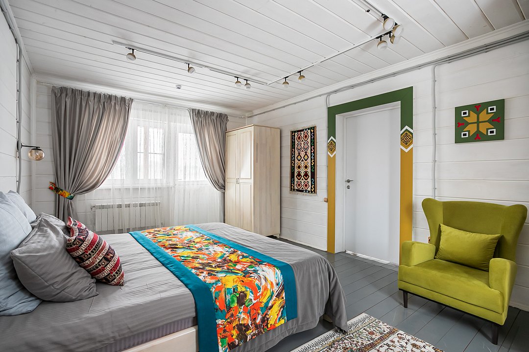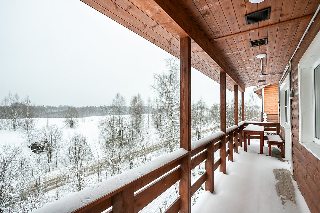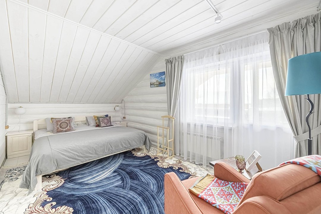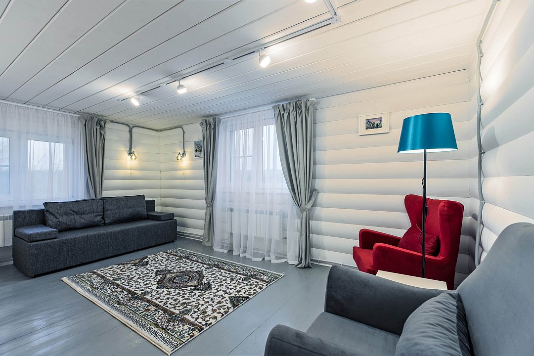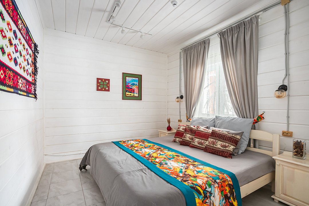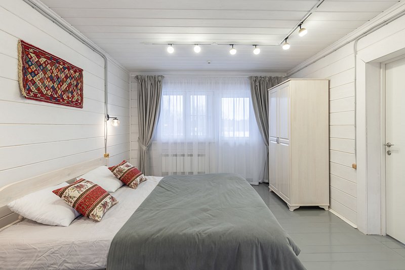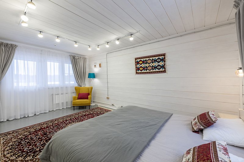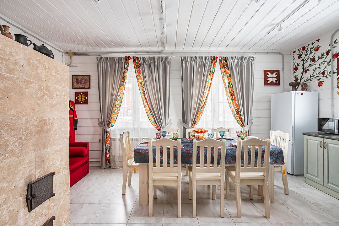 Большой и уютный дом «Санкт-Петербург» площадью сто восемьдесят квадратных метров в гостевом комплексе «Кикино на Веле». Дом двухэтажный, с открытой верандой. Дом рассчитан на четырнадцать гостей (включая детей старше трех лет).