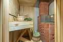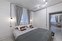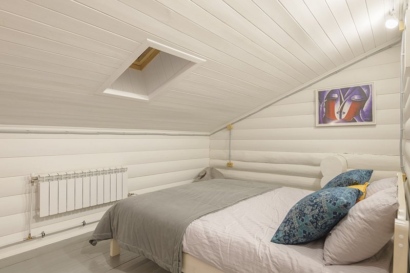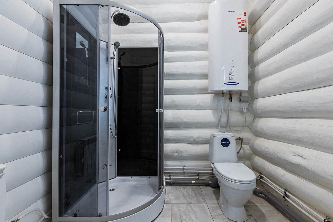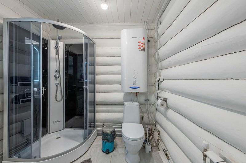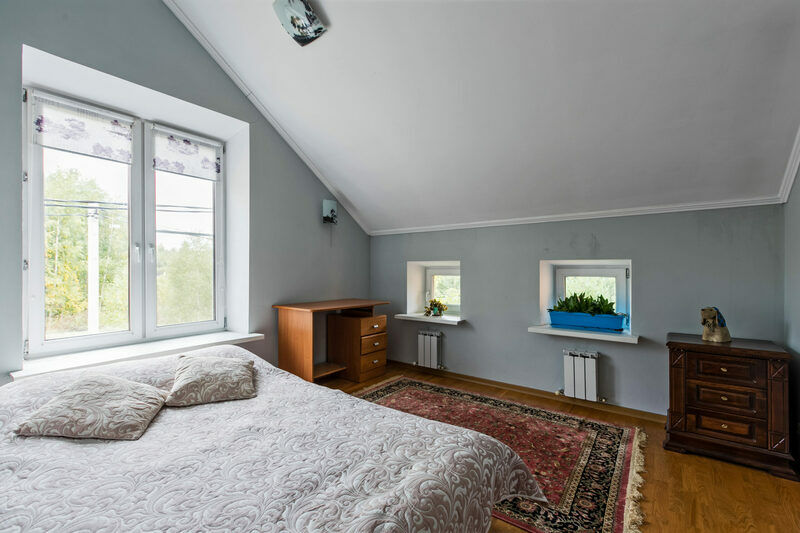 На втором этаже две спальни с кроватями 200х200, одна спальня с кроватью 160х200. Двуспальный диван 160х200 в холле на втором этаже, такие же диваны на первом этаже в спальне и в гостиной. На пеpвом этaже также кухня с русской печью; ванная комната с душевой кабиной, совмещенная с санузлом; теплый пол. Есть кондиционер.