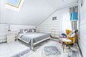 Две спальни с кроватями 200х200 и одна спальня с двуспальным диваном 160х200 на втором этаже, одна спальня с кроватью 160х200 на первом. Двуспальные диваны 160х200 в гостиной первого этажа и в холле второго этажа. Есть кондиционер. Ванная комната, совмещенная с санузлом, на каждом из этажей.