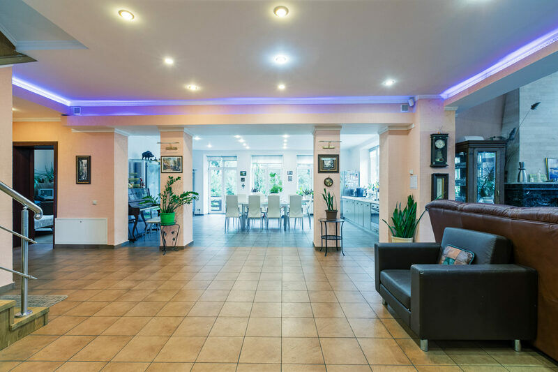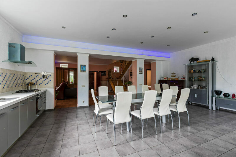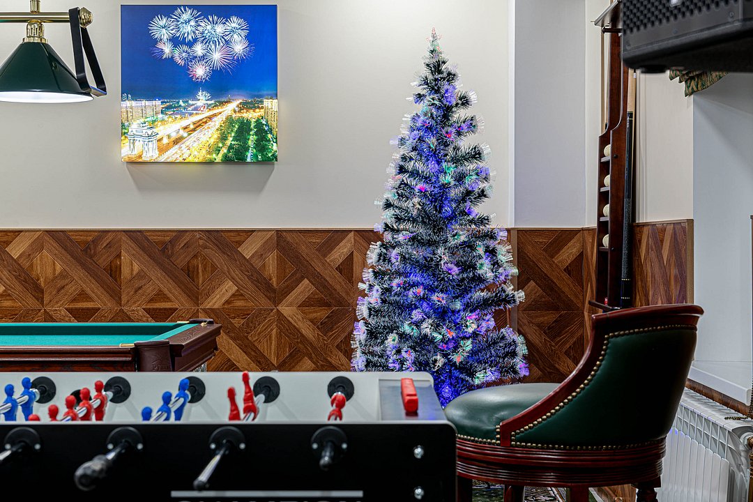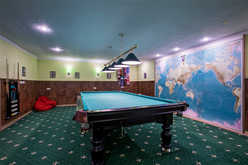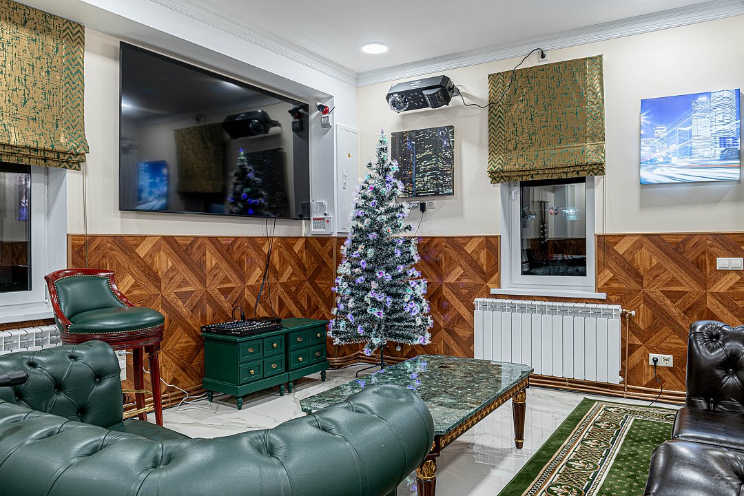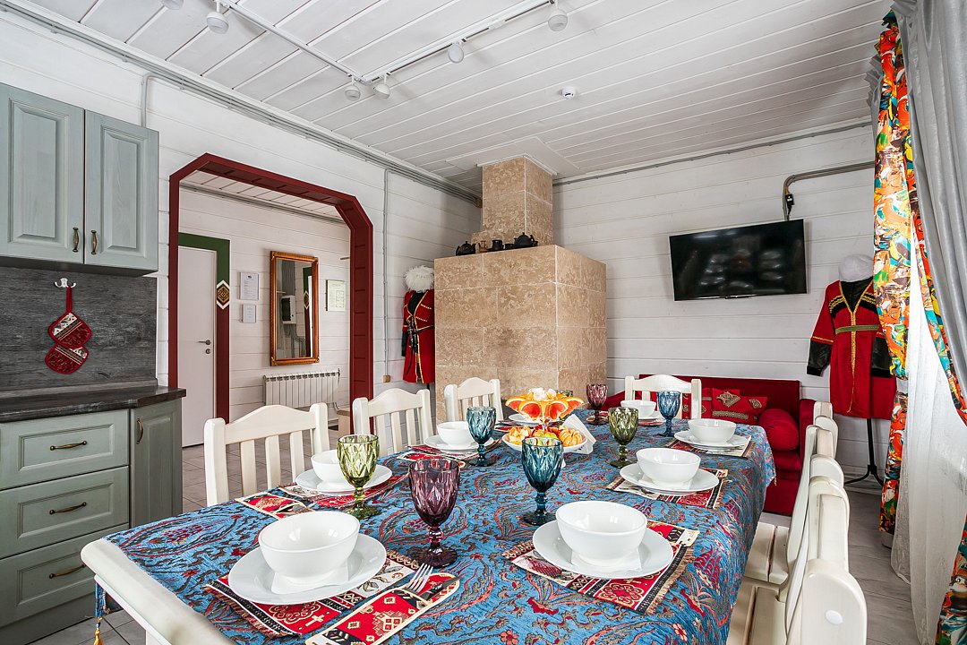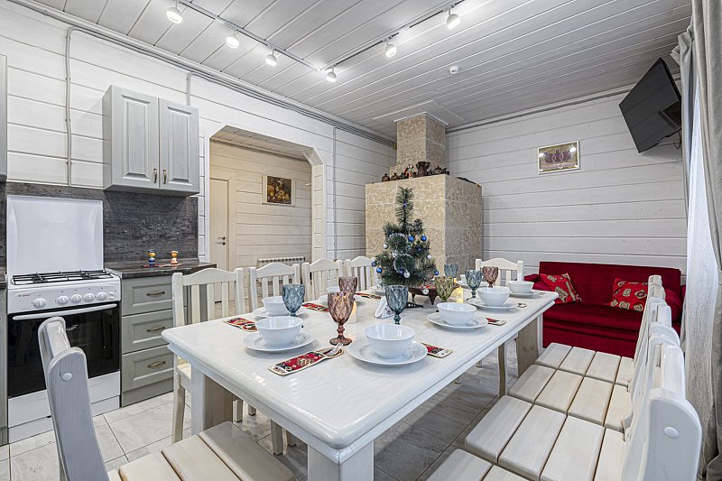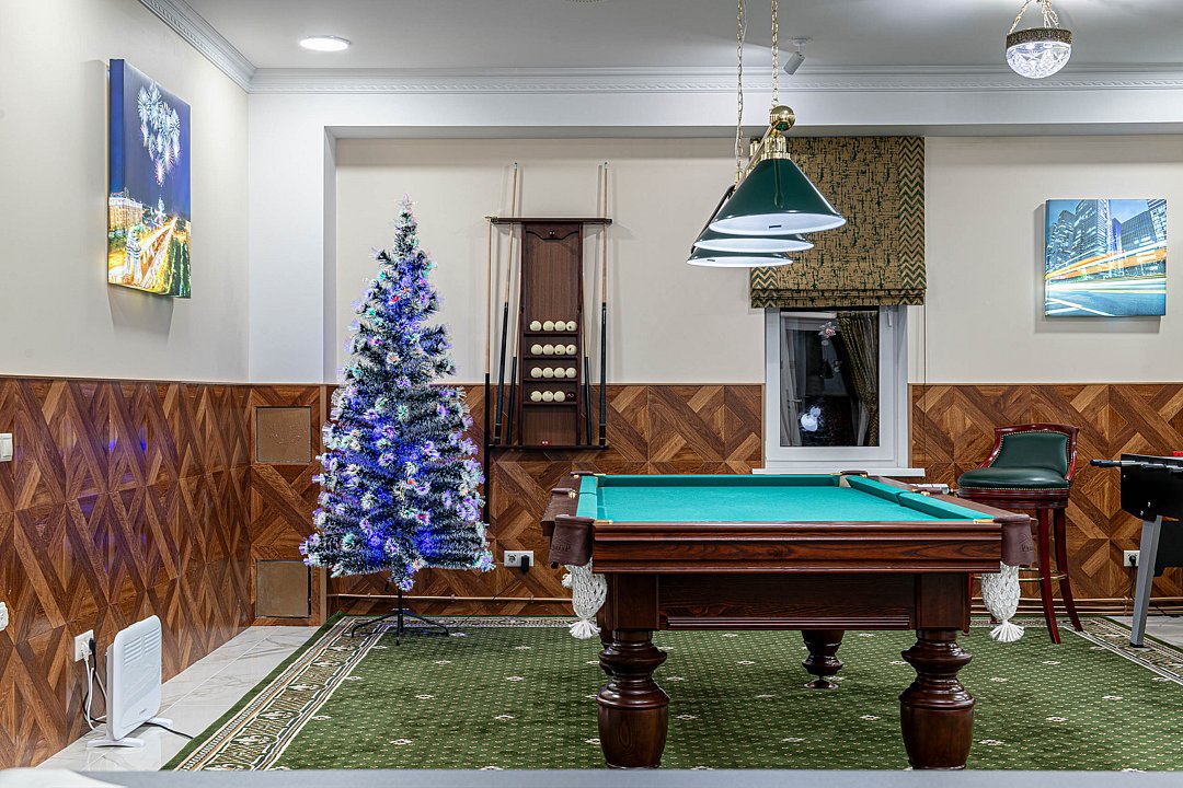 В доме есть русский бильярд, настольный теннис; кухня со всей необходимой техникой: посудомоечная машина, кофе-машина, духовой шкаф; камин на дровах. Посуда для банкетов, белье предоставляется. Парковочное пространство на восемь машин.