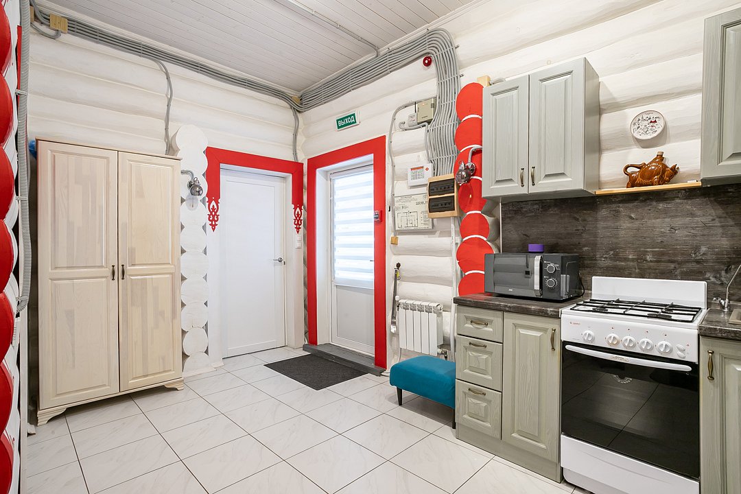 Уютный, теплый гостевой дом «Камчатка» площадью девяносто четыре квадратных метра в гостевом комплексе «Кикино на Веле». Двухэтажный дом из кедрового сруба, вмещает шесть человек, с настоящей русской баней, топящейся дровами.