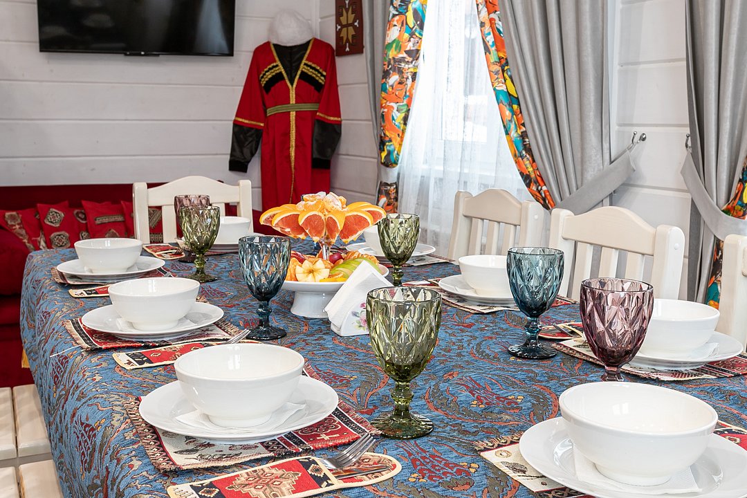 Для гостей предусмотрена кухня со всем необходимым оборудованием: микроволновой печью, кофемашиной, чайником, а также обеденная зона. Постельное бельё и посуда предоставляются. Также есть личная мангальная зона с принадлежностями для приготовления шашлыков и барбекю.