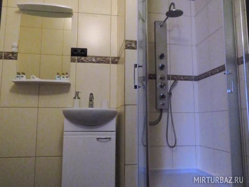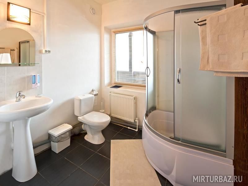 Все номера гостевого дома имеют индивидуальный санузел с душевой кабиной, феном, мыльными принадлежностями. Во всех номерах установлены телевизоры. Номера в главном здании расположены на втором и третьем этажах.