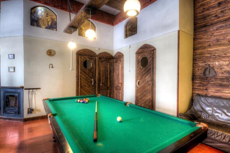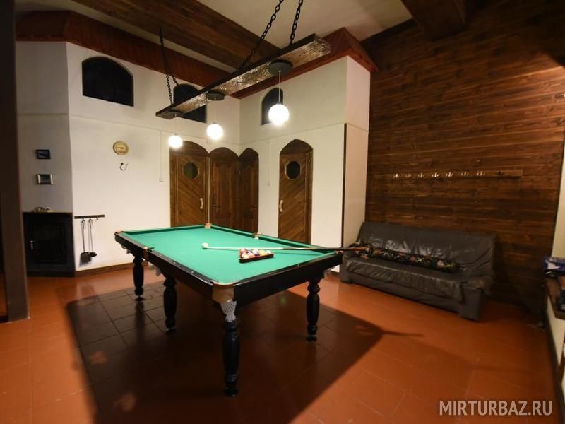 Гости могут с удовольствием отдохнуть за партией в бильярд в уютной комнате с диваном.