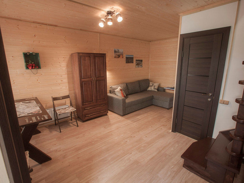 Двухуровневые номера категории «лесной дуплекс» площадью 35 кв.м., расположены в отдельно стоящем домике на основной территории. Каждый номер имеет индивидуальный выход на общее крыльцо. Верхний этаж: спальня с двуспальной кроватью. Нижний этаж – гостиная с раскладывающимся угловым диваном, обеденным столом, чайником, мини-холодильником.