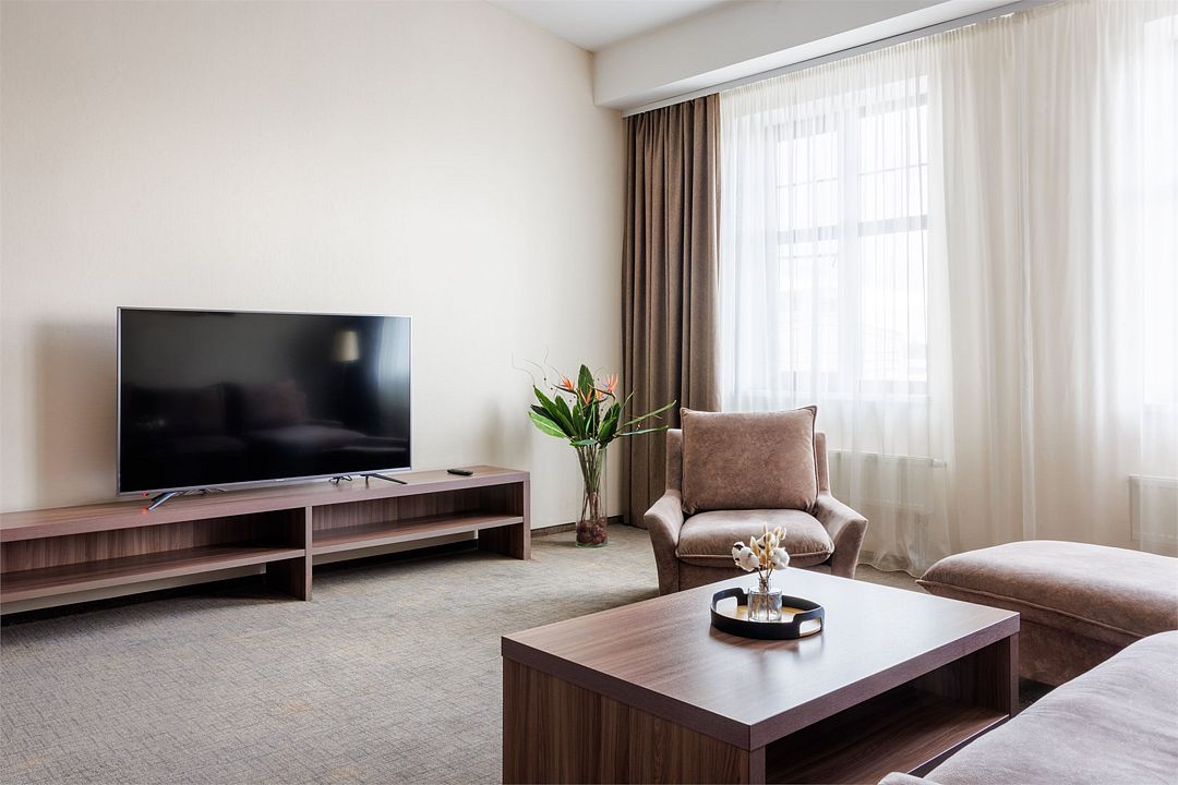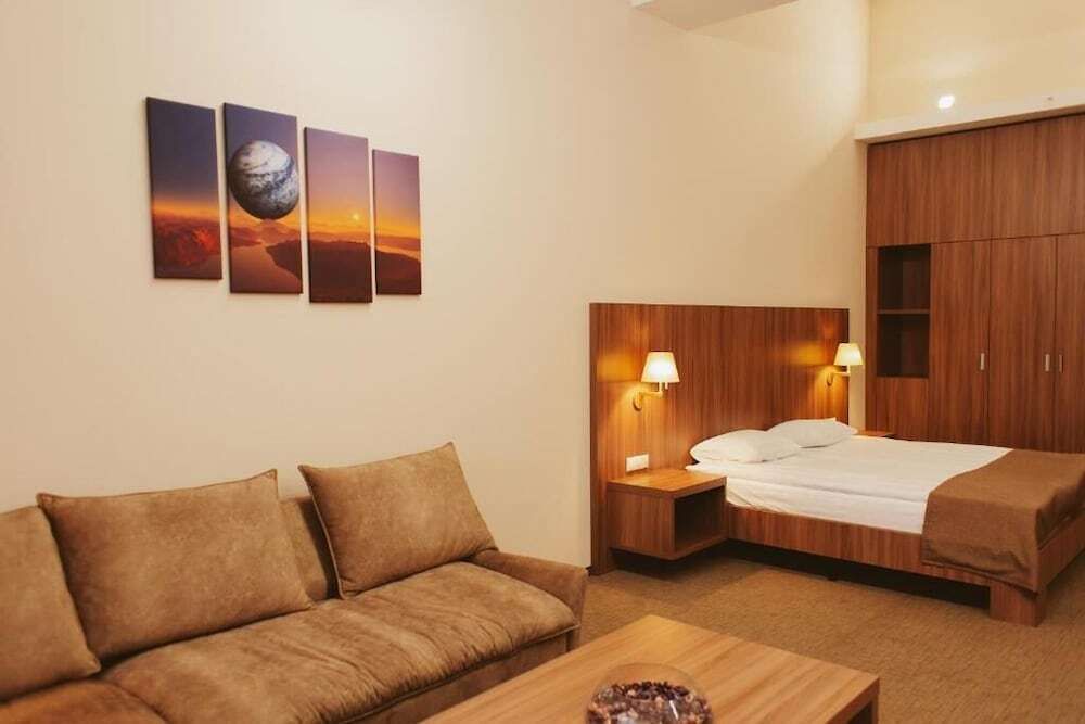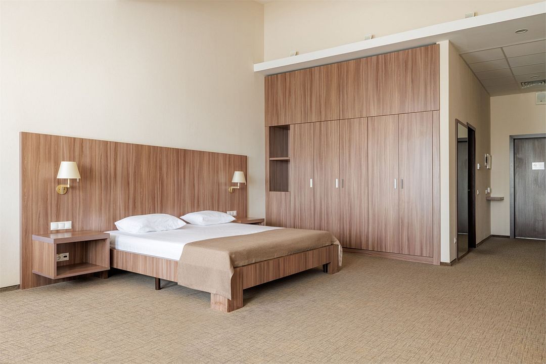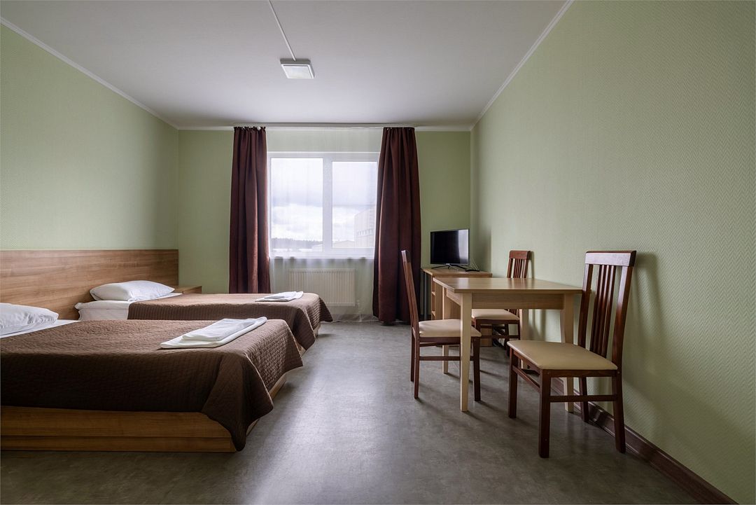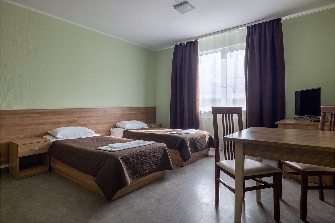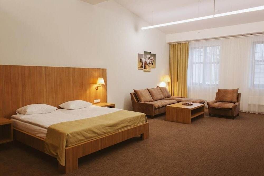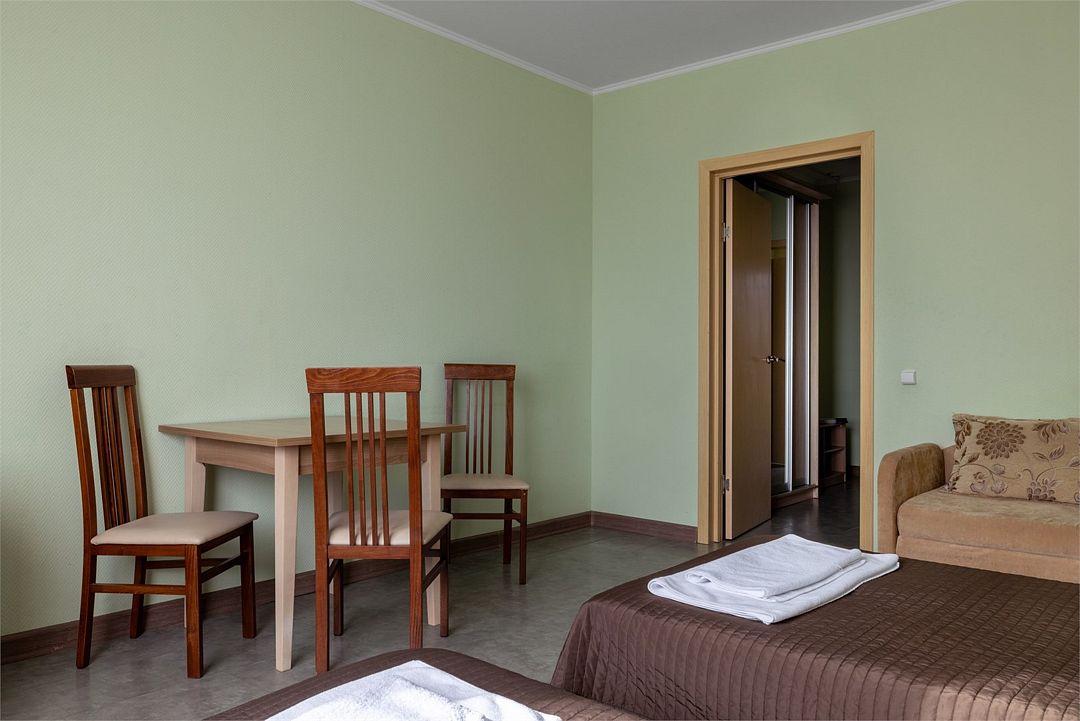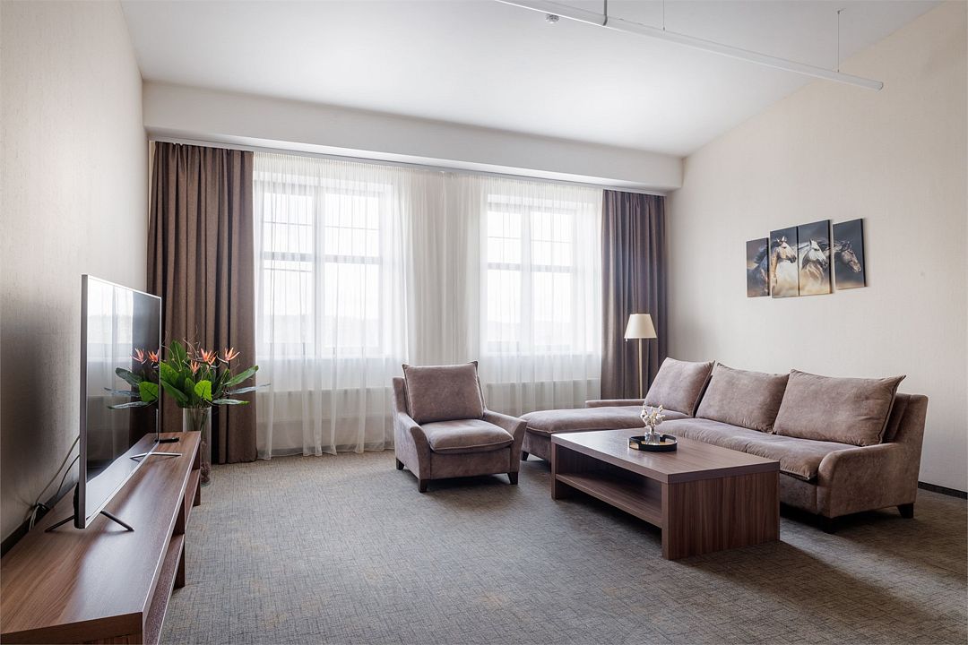 июнь 2021 г.Максима паркЯ воспользовался услугами этого отеля во время проведения в Сухаревских горках на территории подмосковного многофункционального комплекса для активного досуга и отдыха Чемпионата России по дрессировке служебных пород собак. Соревнования проходили в течение трех дней, начинались очень рано, заканчивались поздно, и я посчитал удобным поселиться в отеле, чем ездить туда из дома в Москве. Основной профиль комплекса – конно-спортивный, но и для собачьего спорта там тоже очень хорошо. Просторный номер с кухней в двухэтажном корпусе был удобен не только для нас с супругой, но и нашим собакам. Под окном был выгул для лошади, так что ее ржанье создавало своеобразный колорит проживания в отеле. Удобная столовая самообслуживания сняла все проблемы с питанием. Важным дополнением к проживанию и отдыху является просторный внутренний бассейн.