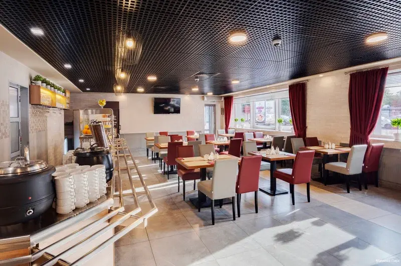 - Экран, сцена, отдельный паркинг, барная стойка.