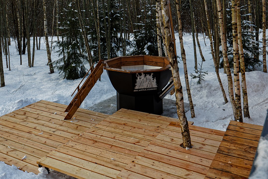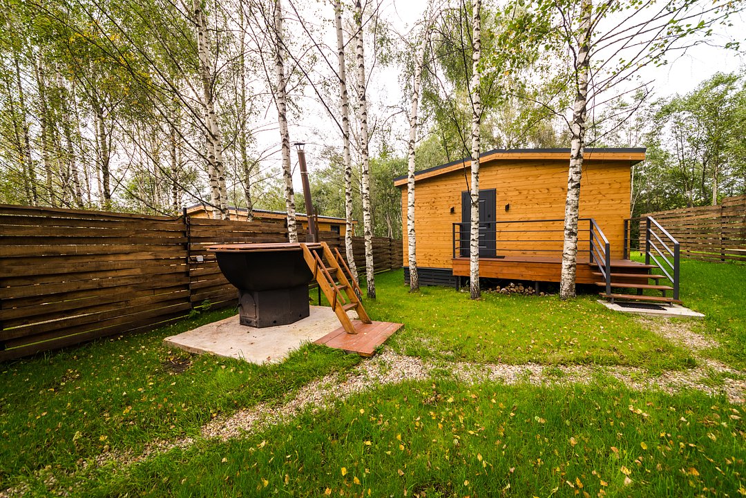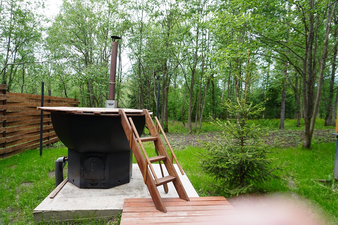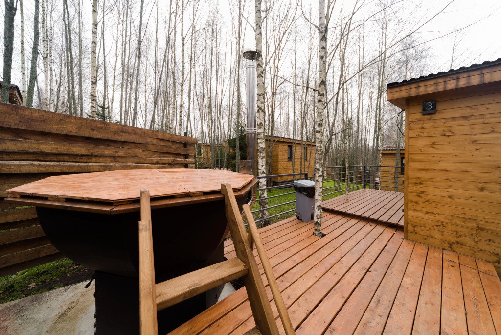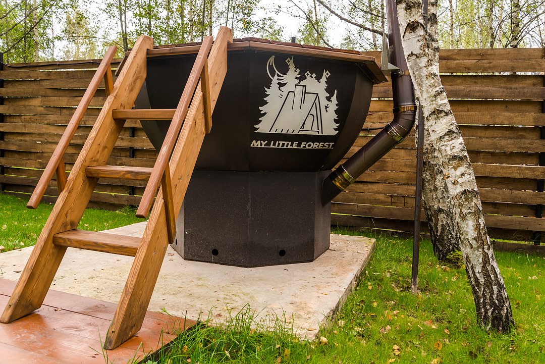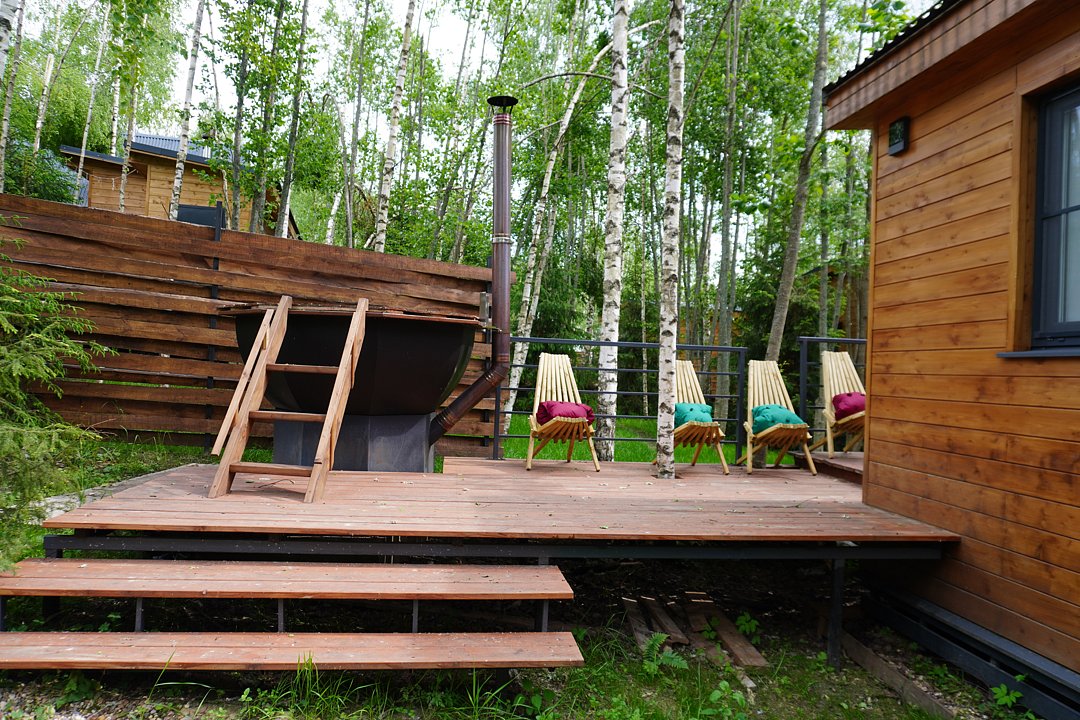 У каждого домика свой банный чан с подогревом на открытом воздухе, где вы можете расслабиться и попариться, как в холодное время года, так и летом, прохладными вечерами.