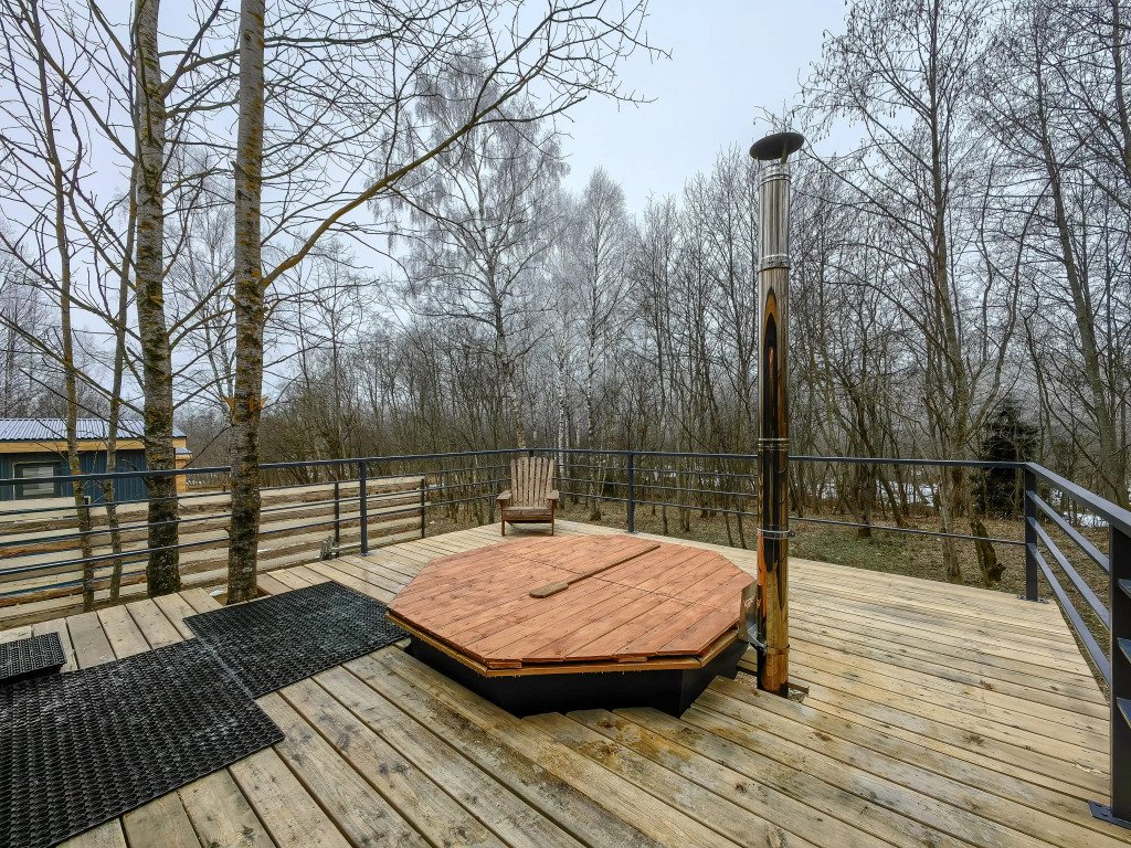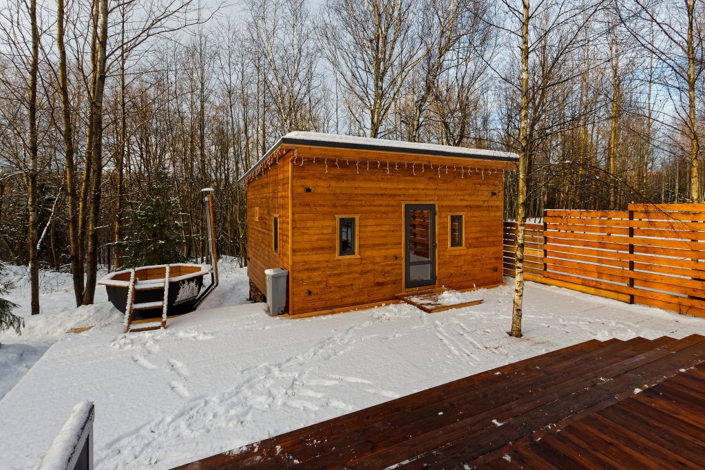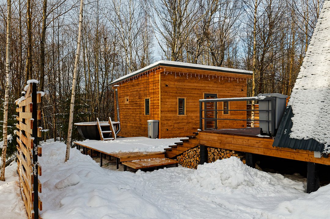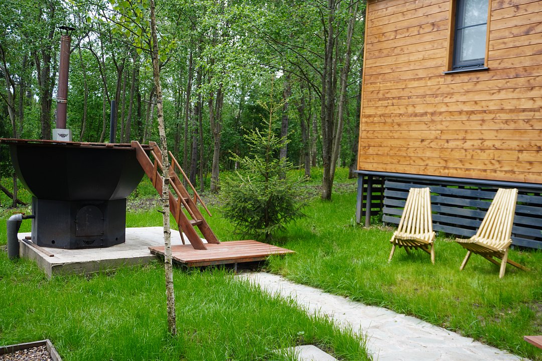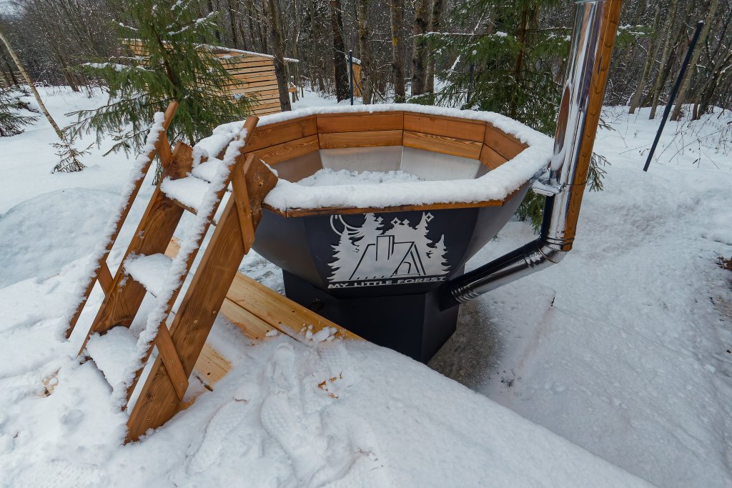 У каждого домика свой банный чан с подогревом на открытом воздухе, где вы можете расслабиться и попариться, как в холодное время года, так и летом, прохладными вечерами.