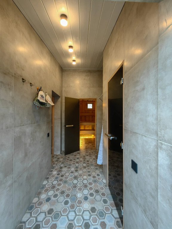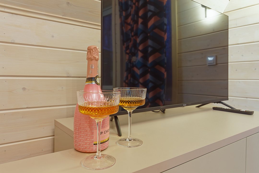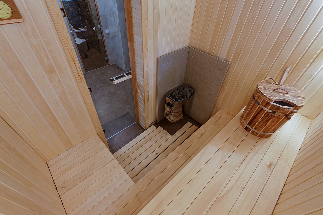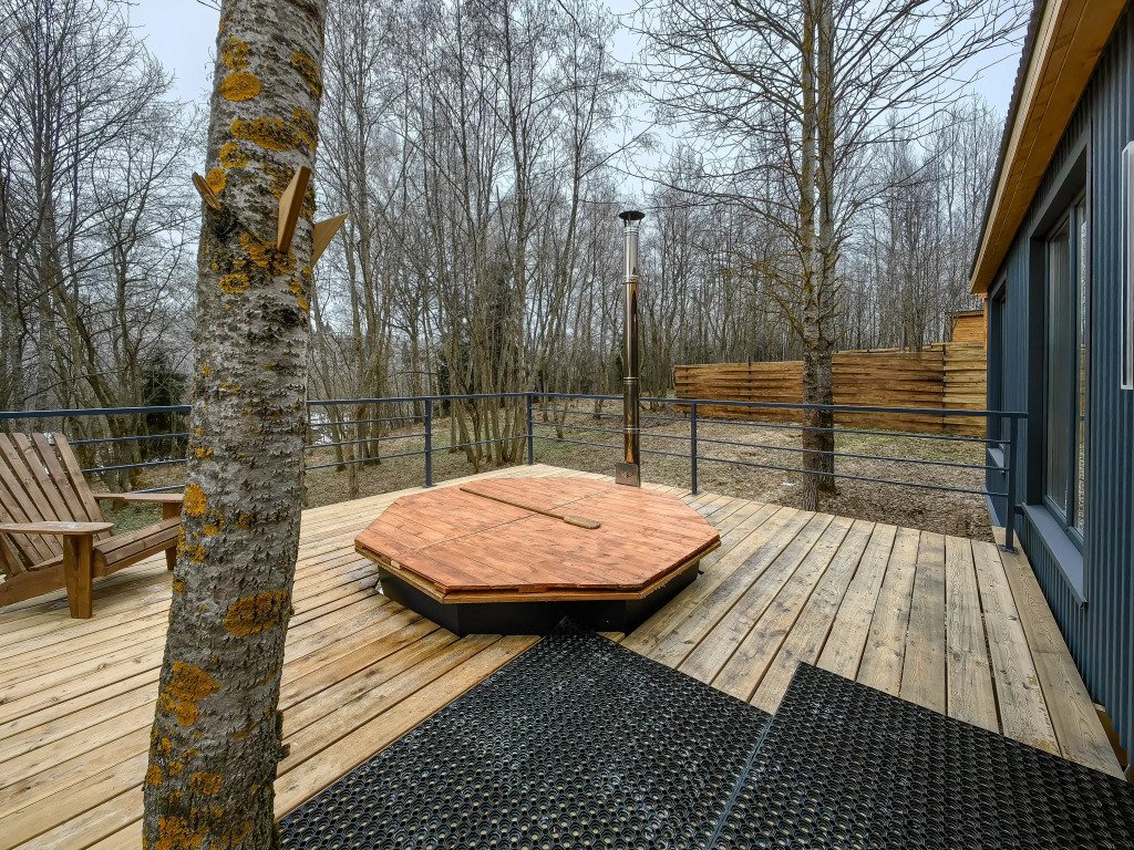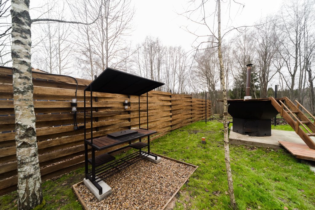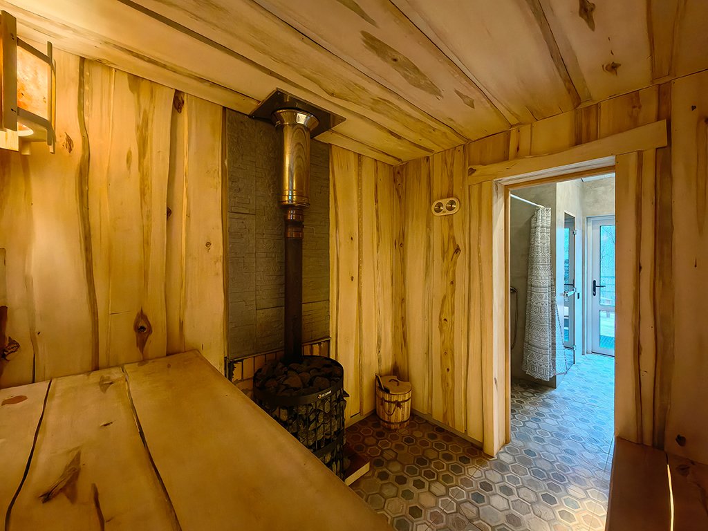 У каждого домика свой банный чан с подогревом на открытом воздухе, где вы можете расслабиться и попариться, как в холодное время года, так и летом, прохладными вечерами.