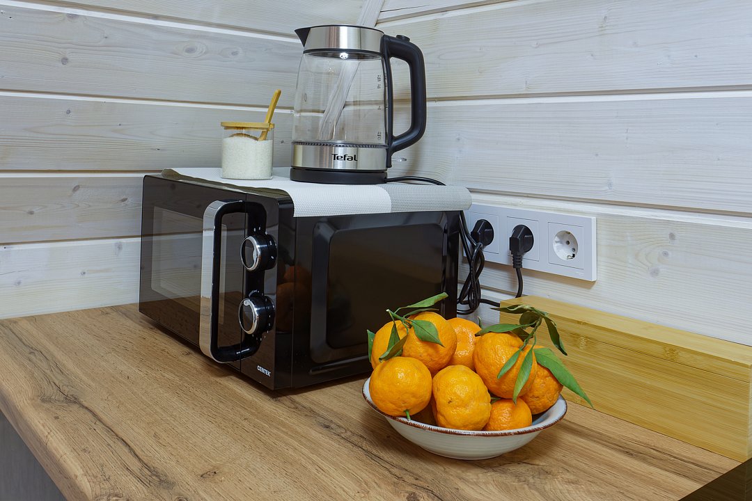 Полностью оборудованная кухня: Готовьте любимые блюда с удовольствием! Наша кухня оснащена всем необходимым, чтобы вы чувствовали себя как дома.