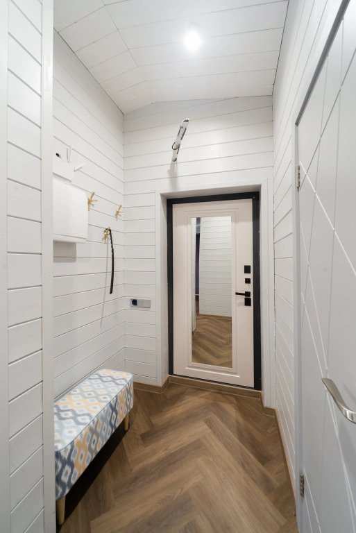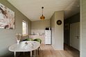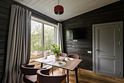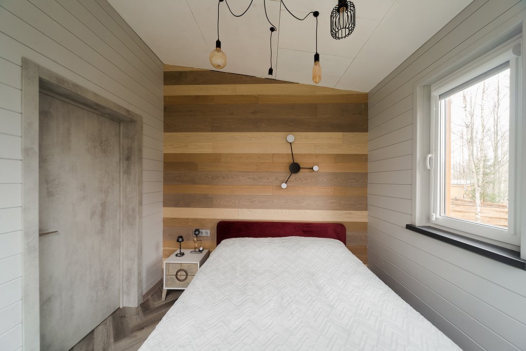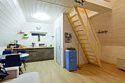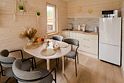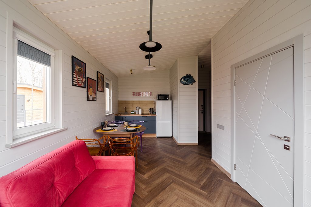 Светлые и компактные домики площадью 45 м² идеально подойдут для комфортного семейного отдыха или для небольшой компании друзей. Размещение для четырёх человек: двое могут разместиться в спальне на втором этаже, а еще двое — на раскладном диване в уютной кухне-гостиной.