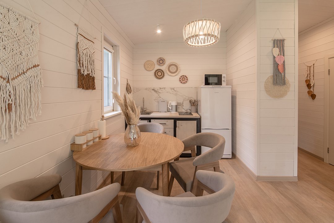 Эти светлые и просторные домики станут вашим уютным убежищем вдали от городской суеты, идеально подходящим для семейного времяпрепровождения или веселой компании друзей.