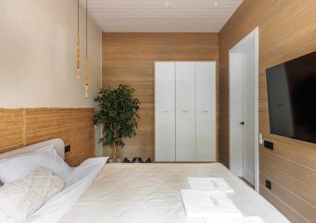 В номере вас будут ждать телевизор и халат. Оснащение зависит от выбранной категории номера.