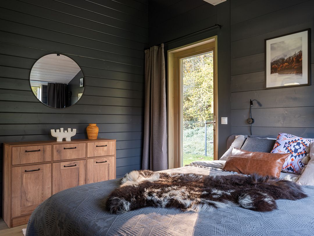2. Спальня с двуспальной кроватью 160х200 с матрасом средней жёсткости и шторами блэкаут