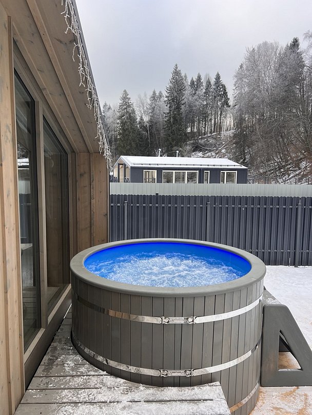 Подогреваемая купель вмещает в себя до четырех человек. Это не только полезный отдых, но и прекрасный способ провести время с друзьями.