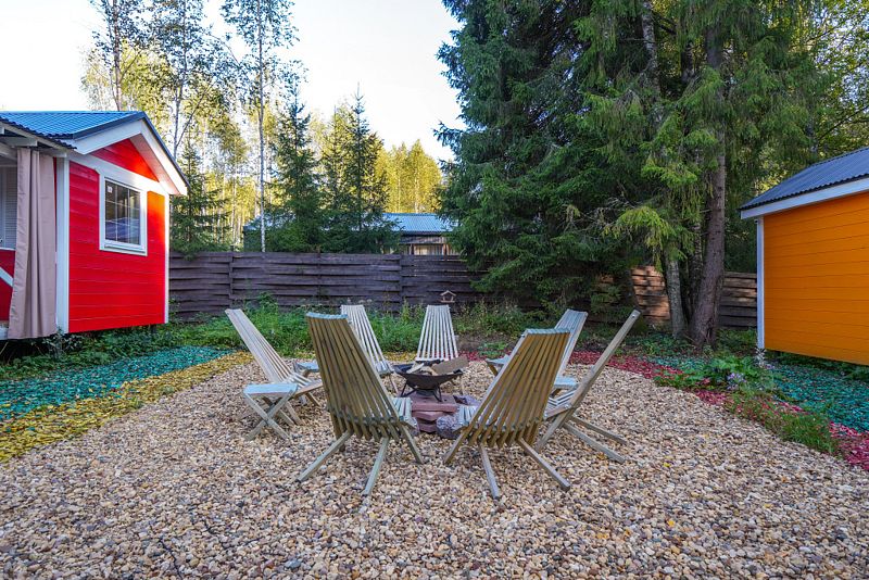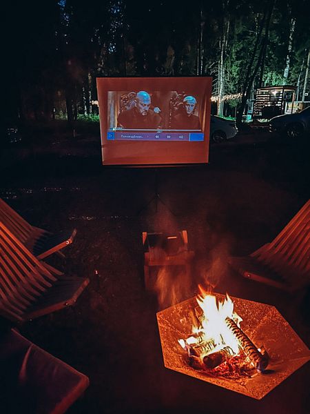В глэмпинге есть возможность прогуляться в лесу по эко-тропе до реки, окунуться в купель фурако с дровяным подогревом или попариться в бане. В светлое время суток можно отдохнуть или позагорать, а в тёмное время организовать кинопоказ у костра.