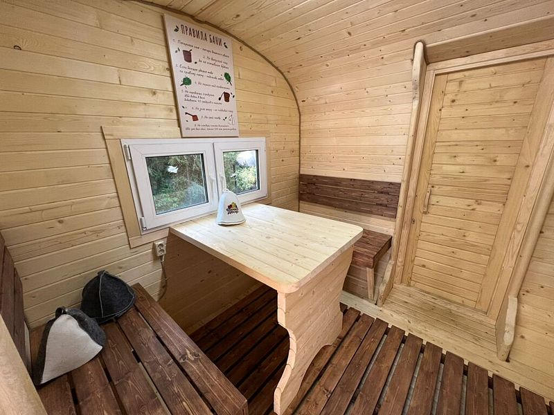 Инфраструктура: купель, зона отдыха, полотенца, шапочки, душМинимальное время аренды: 2 часаДополнительно: веник – 650 ₽, чайник чая – 700 ₽, аренда полотенца – 500 ₽. Акция "Утреннее парение" с заселением: аренда бани с 10 до 12 часов + холодная купель – 6000 ₽; акция "Утреннее парение" без заселения: аренда бани с 10 до 12 часов + холодная купель – 7000 ₽.